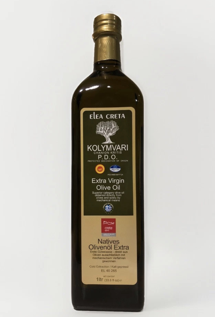 Natives Olivenöl Extra, gU Kolymvari, Sorte Koroneiki, ist ein Naturprodukt mit geschützter Ursprungsbezeichnung, das ausschließlich aus den Früchten der berühmten Olivenhaine in der Gegend von Kolymvari, Chania, Kreta durch Kaltpressung hergestellt wurde.